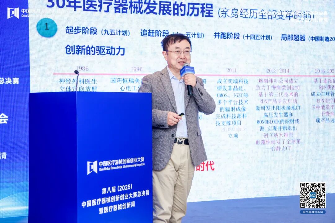 他以奕瑞科技突破數(shù)字X 射線成像核心部件壟斷、納米維景首創(chuàng)靜態(tài) CT 等案例,強(qiáng)調(diào)核心技術(shù)自研、專利布局及多學(xué)科融合的重要性,呼吁醫(yī)生創(chuàng)新創(chuàng)業(yè)需以患者獲益為核心,規(guī)避 “死亡谷” 風(fēng)險(xiǎn)。